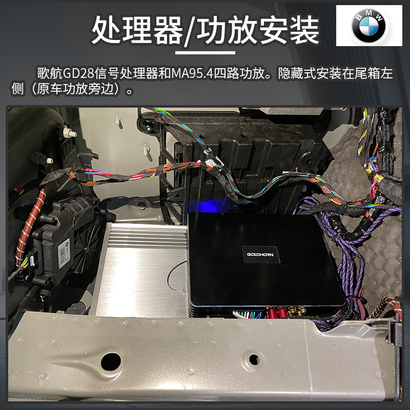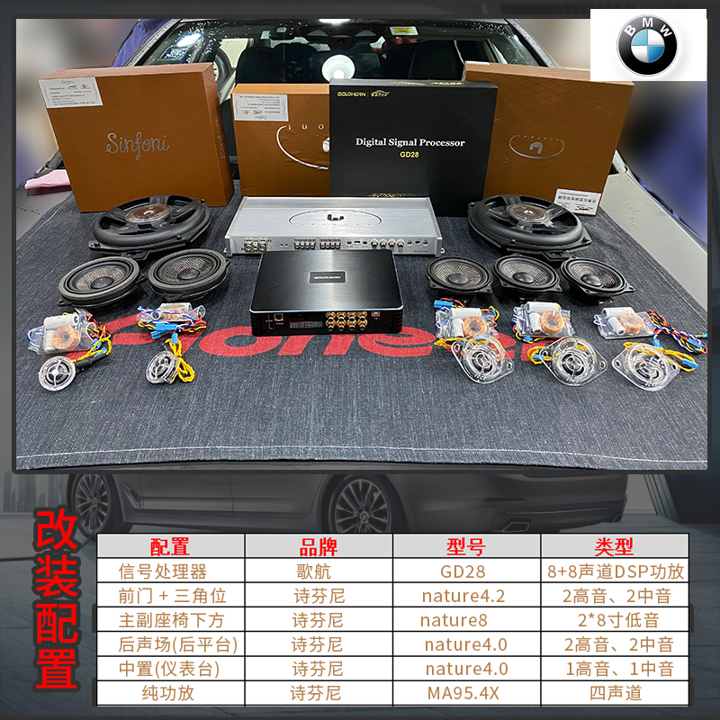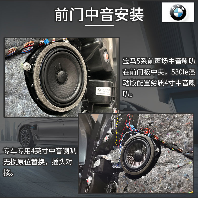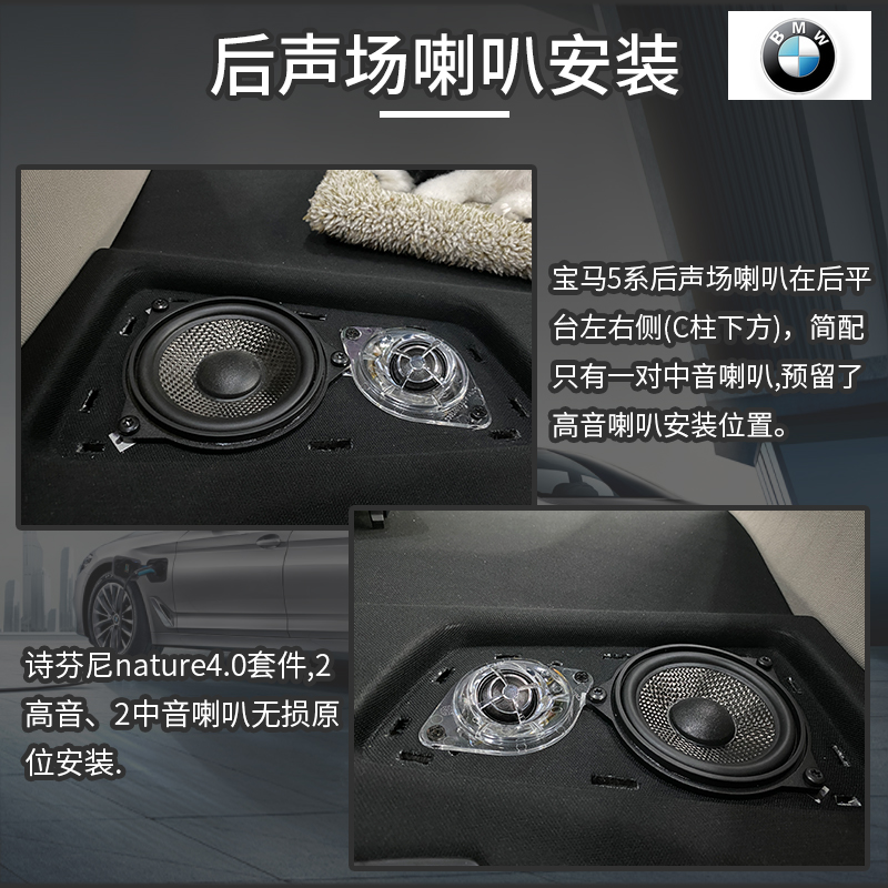 【宝马5系】530le混动版,音响升级,诗芬尼宝马专车专用音响,12只扬声器无损安装,歌航16路DSP功放,再加4声道纯功放。方案适合任何宝马车型无损升级,效果秒哈曼秒宝华。