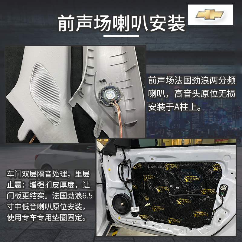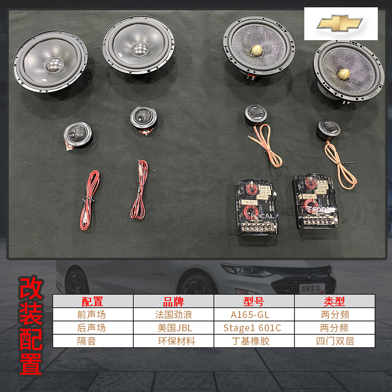 雪佛兰迈锐宝音响改装,超值套餐方案,性价比极高,法国劲浪两分频+美国JBL两分频+四门双层隔音,想入门改装的朋友,可以参考!